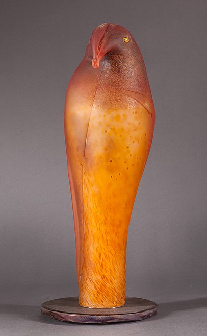 Q: Tell me about the bird glass sculpture, “Red Tail,” displayed at Frame of Reference Fine Art in Whitefish.