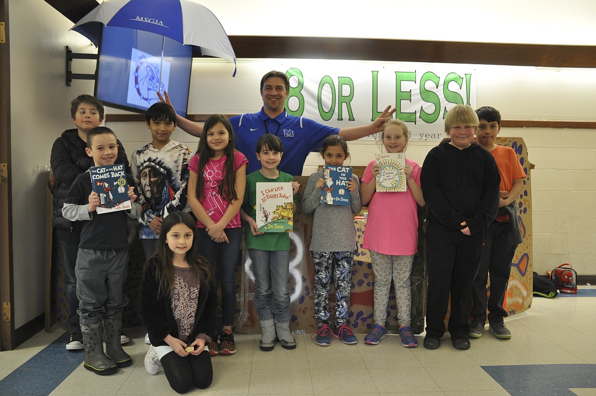 To celebrate “I Love to Read” month in February, Principal Tyler Arlint challenged his 250 students to read 1,500 books. The students surpassed the goal, reading 1,856 books.