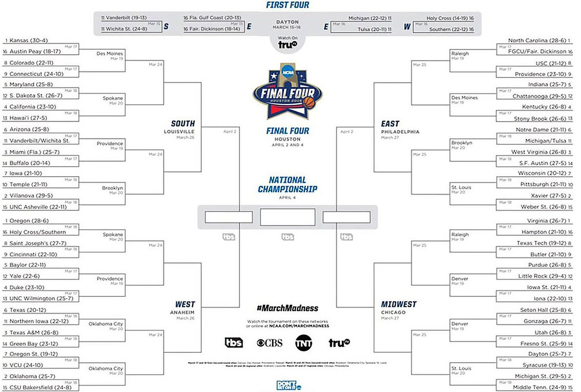 After each week of bracket carnage, the Bee will update the leaders. Whoever picks the most Final Four teams wins the $100, with tie-breakers to decide after that.