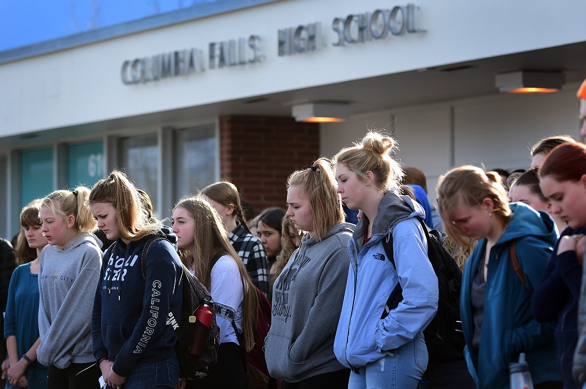 More than 100 Columbia Falls High School students took to the school’s driveway at 10 a.m. Wednesday morning to protest gun violence and the loss of life at the Marjory Stoneman Douglas High School shooting in Florida last month.