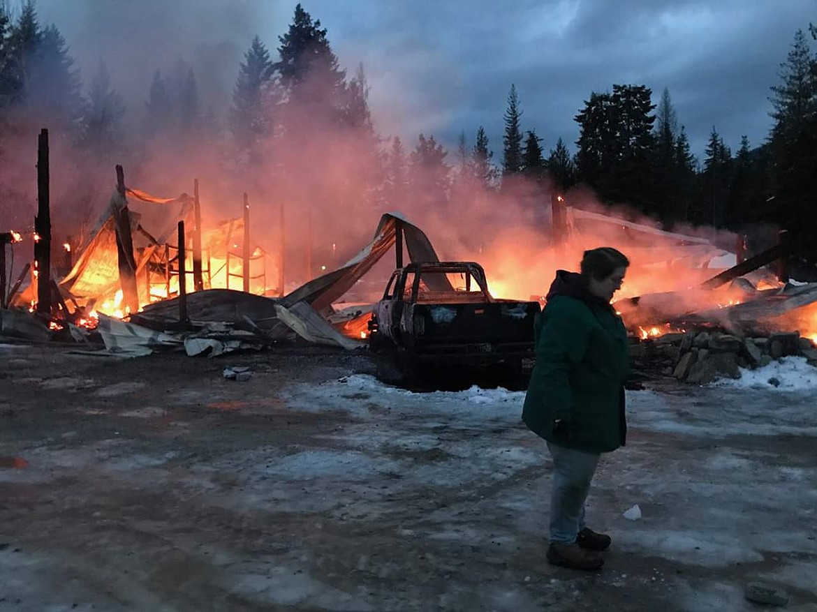 Larry and Kathy Humberg recently experienced the tragedy of a fire, just outside of Boundary County, in Montana. On Feb. 27, the Humbergs had a mostly normal evening. Kathy Humberg’s son had been staying in an apartment addition in the barn and storage building, on their property. He was away for a few days, and had a friend look after the place in his absence. At a point on that fateful night, the caretaker left the premises, and narrowly missed a fire breaking out, which then burned the building to ashes.