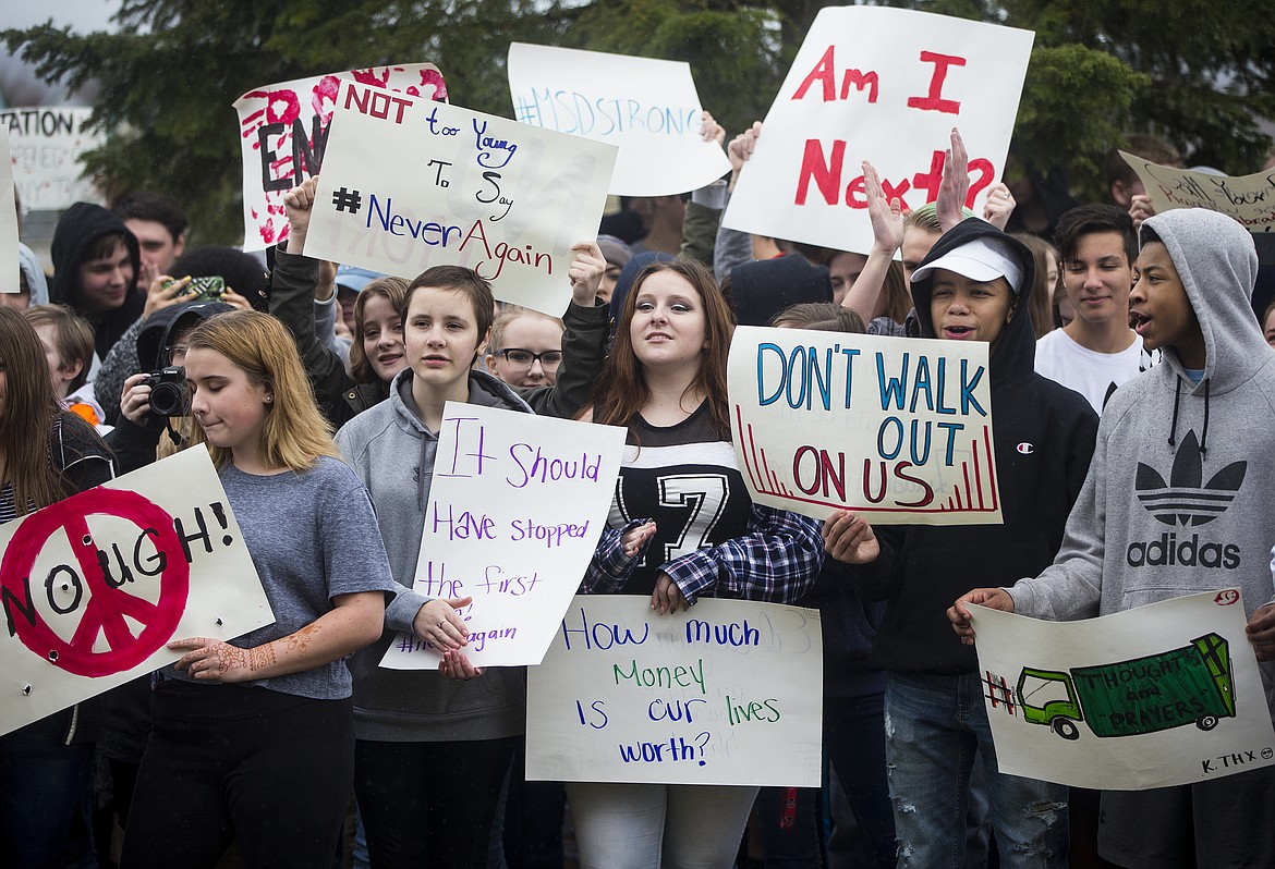 COEUR d’ALENE — Armed only with signs and their voices, several hundred Lake City High School students weathered the cold and rain to protest school violence Wednesday morning.