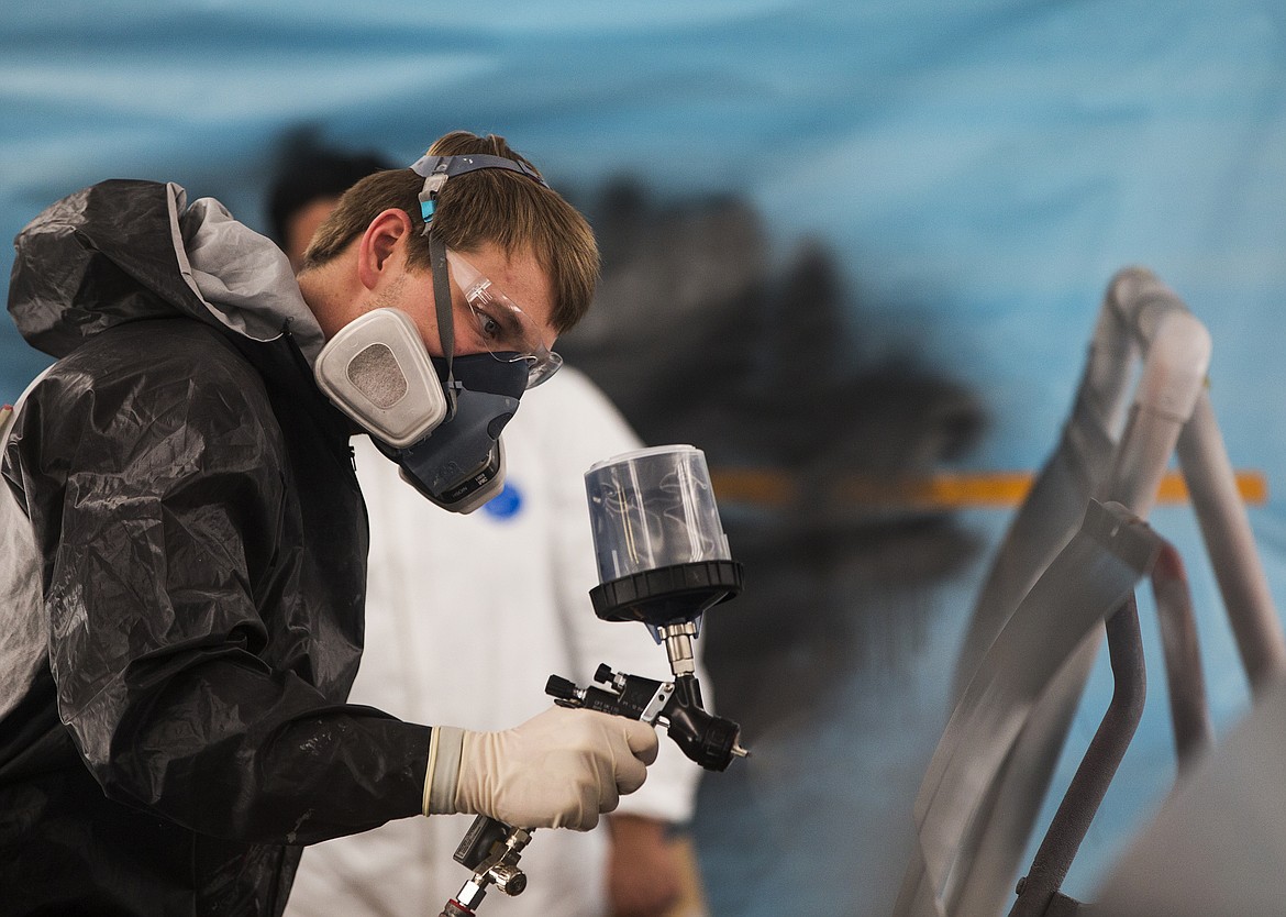 Coleton, an auto body collision repair student, showcased his refinishing finesse Friday during the Friendly SkillsUSA Scrimmage in the North Idaho College Parker Technical Education Center in Rathdrum.