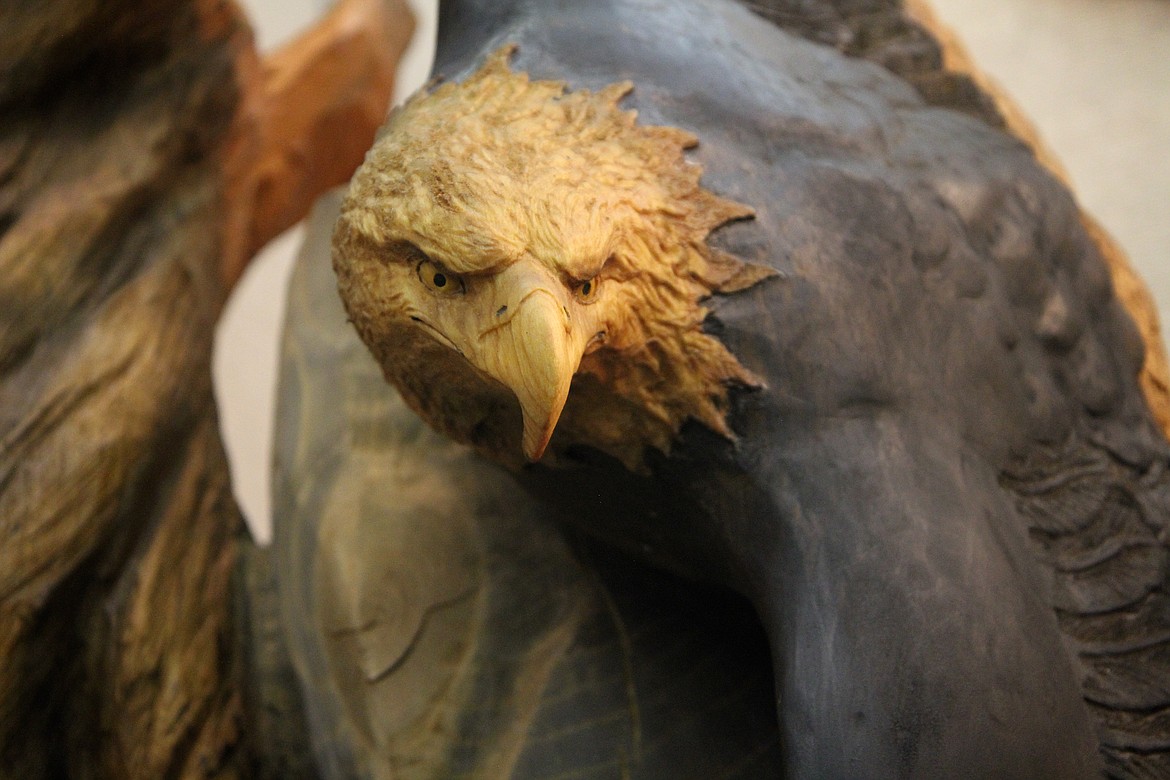 Over time he moved on to bears, eagles and even a project in San Francisco that was 26 feet tall. While traveling for that San Francisco project, he learned how to work with stone on weekends when he couldn’t carve wood due to noise ordinances.
