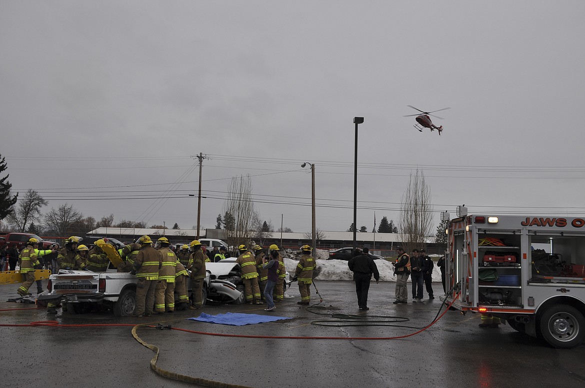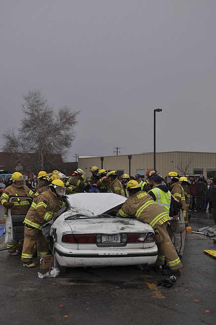 The mock crash takes about an hour which involves first 9-1-1 call, to actors being taken away in a hearse from Lake Funeral Home in Polson or placed in a medical helicopter or in the back of a cruiser.
