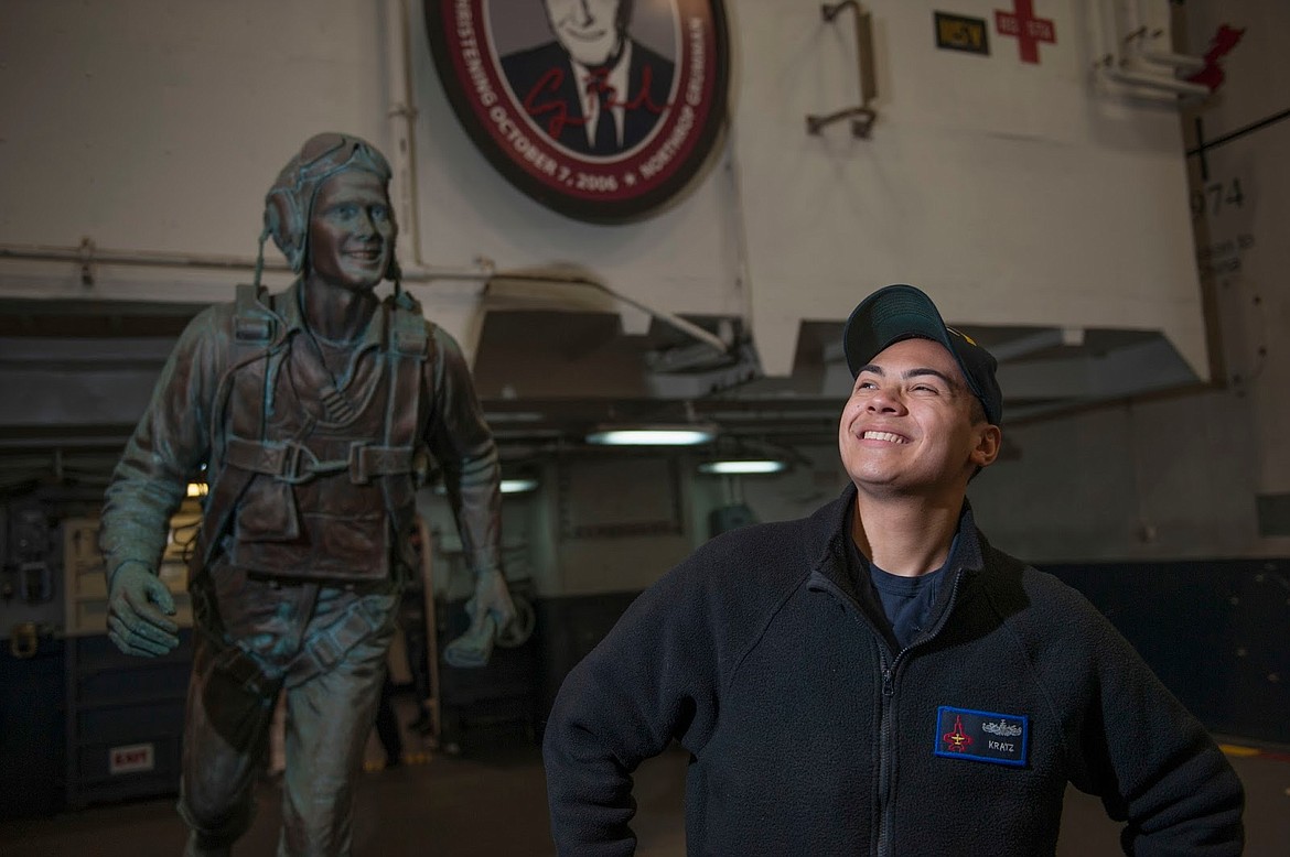 Petty Officer 2nd Class Kody Kratz is a machinery repairman aboard the carrier operating out of the Navy’s largest base.