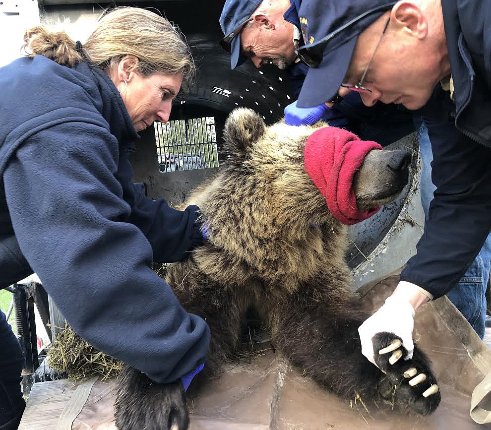 A male grizzly bear that was getting into garbage was captured by state wildlife officials April 28 near McGregor Lake. The bear was released in a remote location in the Kootenai National Forest.