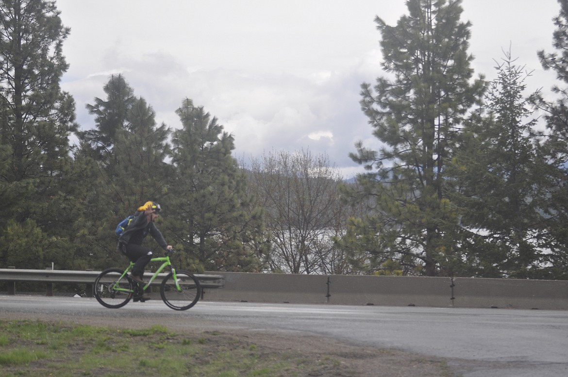 Even with the scattered rain, Niemeyer estimated that he was going to bicycle his 10 mile committment at a pace of seven minutes a mile.