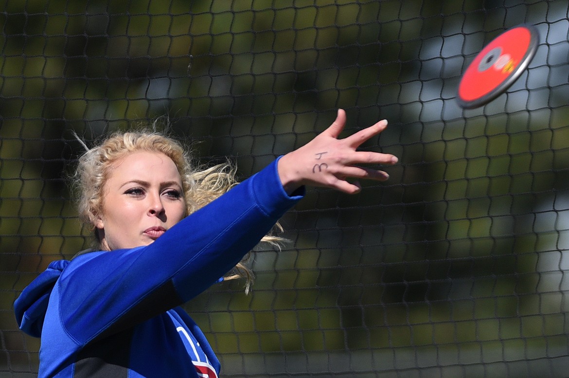 Bigfork's Ashton McAnally competes in the girls discus at the Bigfork Invitational track and field meet on Saturday. (Casey Kreider/Daily Inter Lake)