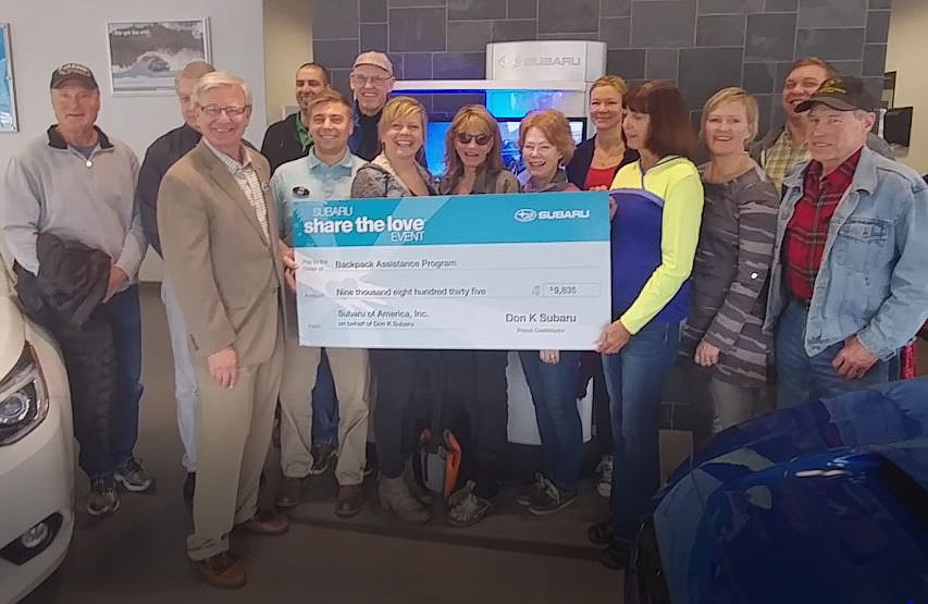 Don “K” and Subaru recently presented a check in the amount of $9,834.78 to the local chapter of the Backpack Assistance Program as a result of their being chosen by the employees at the dealership to become the 2017 hometown charity beneficiary of the recently completed Subaru Share the Love event.