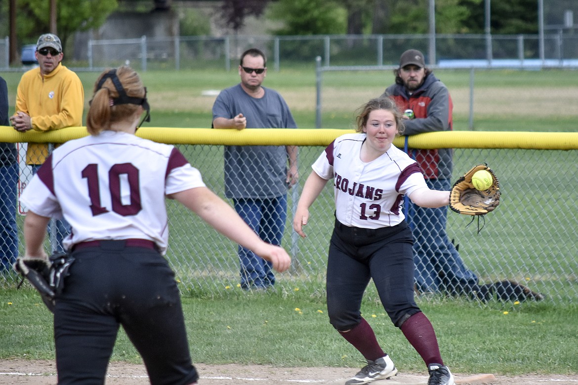 In top of the fifth, with runners on first and second, Troy sophomore pitcher Mazzy Hermes snatched up a ground ball from Eureka’s Avory Escober and threw it to junior Tristyn Winebark for the out.