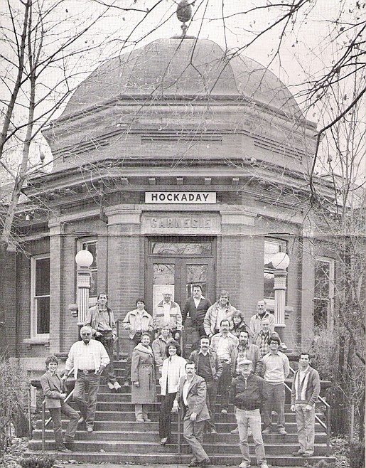 What is now a well-established cultural center was born out of a truly grassroots effort. The six founders credited with starting the museum are Ed Bailey, Corinne Lundgren, Anne McLeod, Greta Sliter, and Janet and William Bierrum. In 1967 they learned that the Carnegie Library Building, where the Hockaday is now, was to be vacated once the local post office was remodeled into a new library.