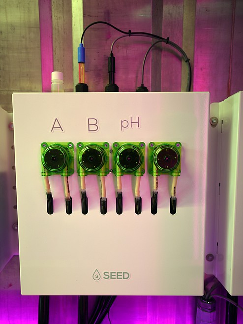 Growers need only get their hands dirty for the planting and harvesting, dropping a single seed into a cork-like seed pod and placing it into a seedling container until the plant grows big enough to be moved into one of the hanging columns to grow to its full size.