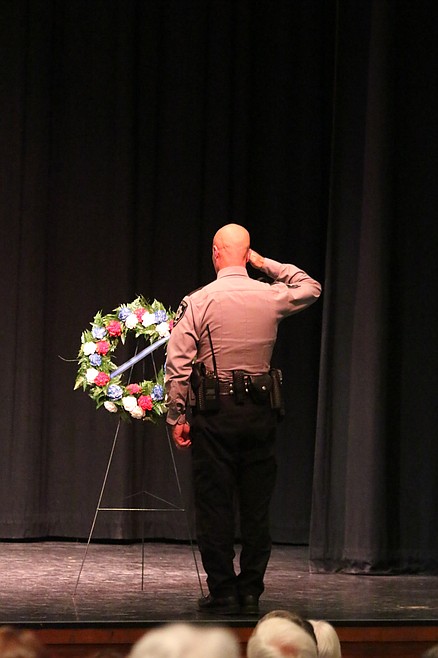 The colors were then retired by the honor guard, accompanied by Patrick Warkentin playing “Amazing Grace” on the bagpipes, echoing throughout the auditorium and the hearts of those who attended, showing their support and gratitude for those who choose the put their life on the line, day after day.