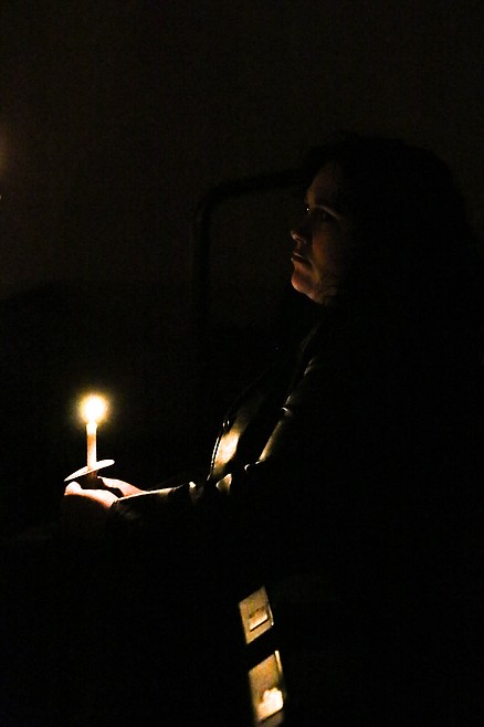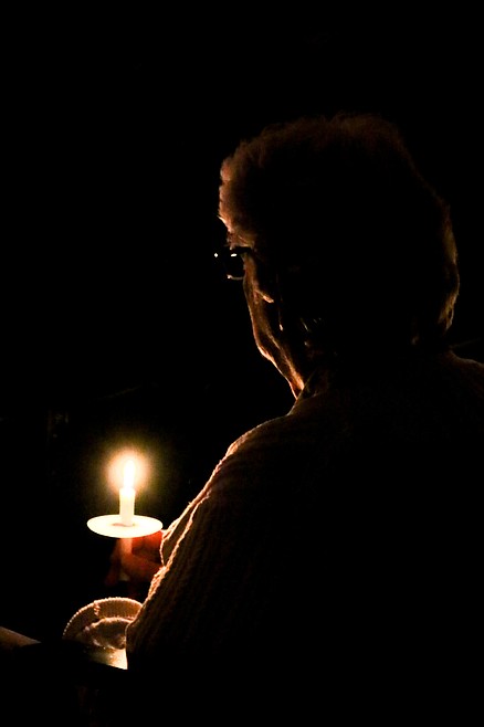 The lights were then lowered as the audience took the candles they were provided when they first arrived, and lighting one to another. Soon the auditorium was dark, except for the tiny beacons of light that flickered, dotting the blackness.