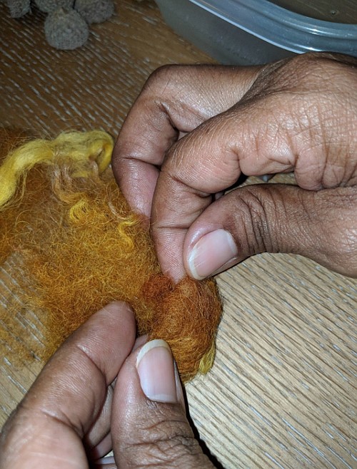 Natural fibres are best for this project. I used sheep roving, but alpaca roving works just as well.