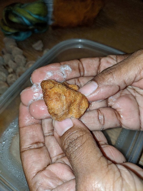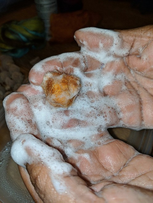 4. Place fibre in the soapy water. Do not let it go yet.