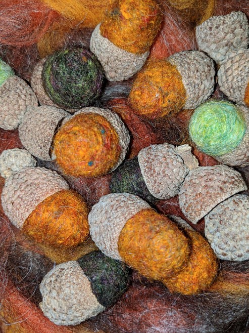 6. Let the felted acorns air dry or place them in a mesh bag and toss them in the dryer.