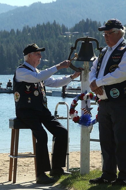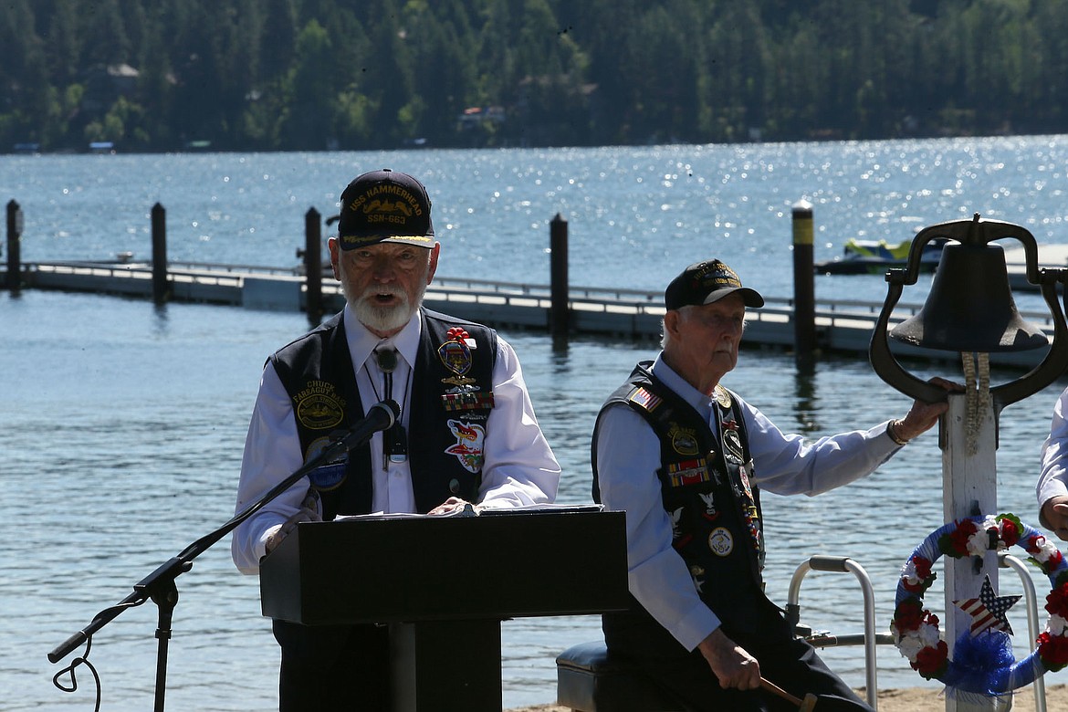 Members of the U.S. Submarine Veterans Farragut Base chapter led spectators at Honeysuckle Beach in a remembrance of American submariners who died at sea. According to master of ceremonies Jerry Parker, a higher percentage of submariners perished in World War II than in other types of units. World War II submariner Tom DePew tolled the bell for each of the U.S. submarines that have been lost at sea. Canfield Middle School sixth-grader Brady Bailey helped lay a wreath in Hayden Lake in their honor.