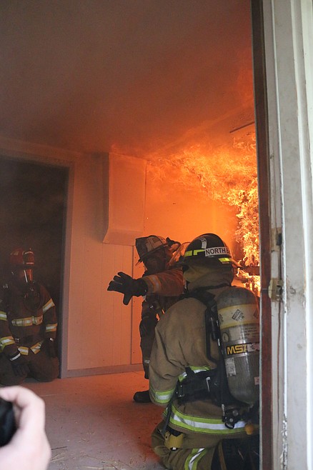 They began the day with an exercise known as a confidence burn in which the firefighters went into a room where the fire was then lit and the door was closed with them inside.