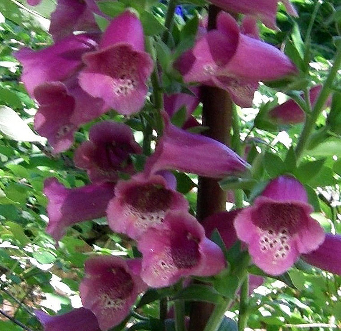 My decades of living with (and loving) moss has, however, made me a true aficionado of its positive aspects. Aside from the fact it is pretty, generally pretty much weed-free, it welcomes some very special garden ornamentals – a few of which include the pictured Digitalis (foxglove), along with: Aconitum (monkshood); Aquilegia (Columbine); Brunnera ; Dicentra (Bleeding heart); Tiarella (foam flower); Huechera (Coral bells); Hosta; Ferns; Hellebore; Lilies of the Valley; Oriental (water-loving) Iris; Pulmonaria (lungwort); Astilbe, and a host of natives such as Dewberry, Bloodroot, Solomon’s seal, Trillium, Turk’s cap lily, Sweet Autumn Clematis, and many more — all growing happily in the rocky, mossy soil. If there are extant mossy rocks and fallen logs, so much the better — they make for gorgeous backdrops as well as spots for tuck-in plantings.