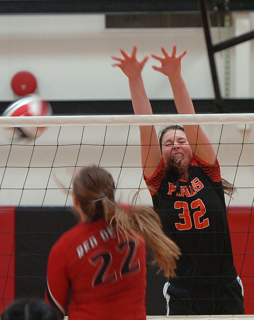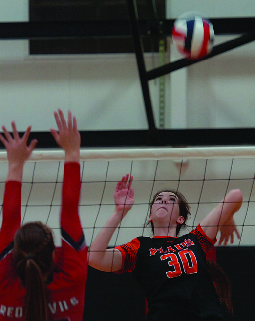 Plains’ “twin towers” — 6-foot-1 junior Kylee Altmiller and 6-2 senior Rachel Huenink — were dominant at the net during the district tourney. Altmiller was credited with an astounding 35 kills in the title match win, while Huenink had seven blocks. Haley Josephson, a senior, dished out 34 set assists. Junior libero Audrey Brown was all over the court to earn 21 digs.