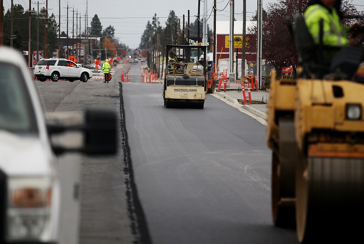 The $5 million Government Way paving and widening work — which includes 11-foot motor vehicle lanes, bicycle lanes on both sides of the four-lane road, 12-foot turn lanes and sidewalks on both sides of the street — was supposed to be completed this week.