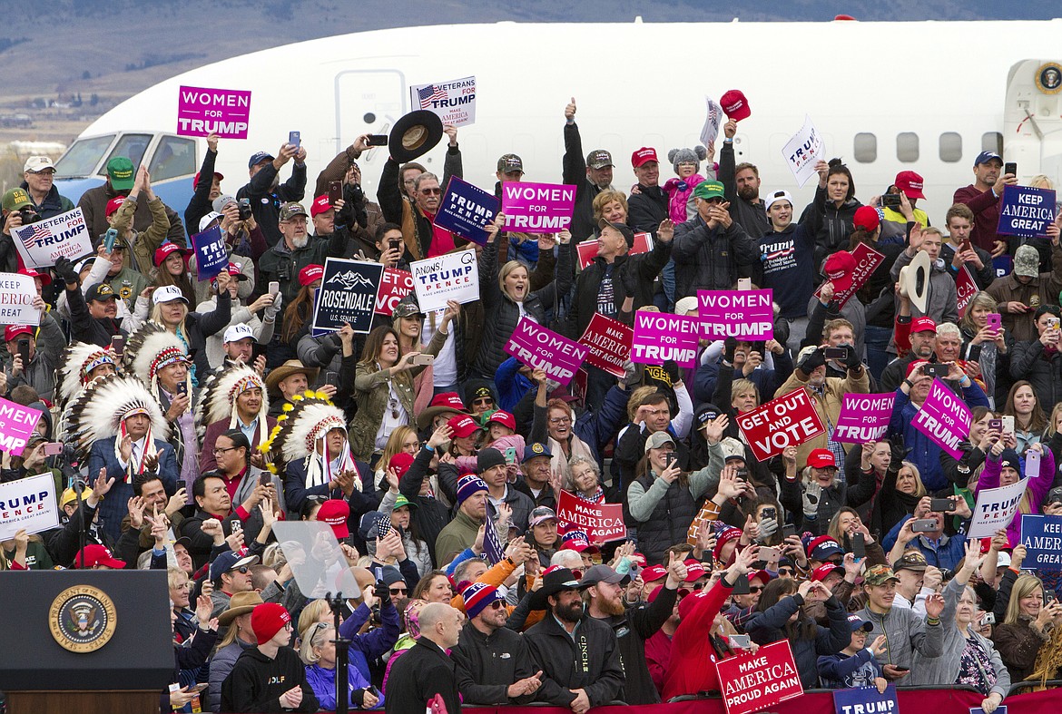 Trump sought in Montana to rally the crowd, which was bundled up against the November chill, by talking up the economy and tax cuts, new Supreme Court Justice Brett Kavanaugh, border security and several caravans of Central American migrants who are slowly advancing toward the U.S.-Mexico border.