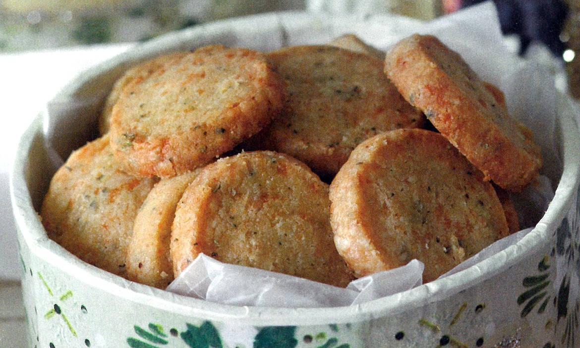 This recipe makes about 10 dozen wafers, and as suggested in the illustration, can be made into dessert sandwiches with chocolate glaze, chilled lemon curd or other seasonal choices. Too, the suggestion of stirring a tablespoon of finely minced crystallized ginger into the dough adds a number of other delectable possibilities.