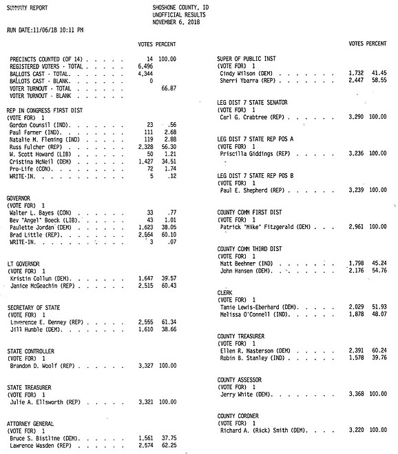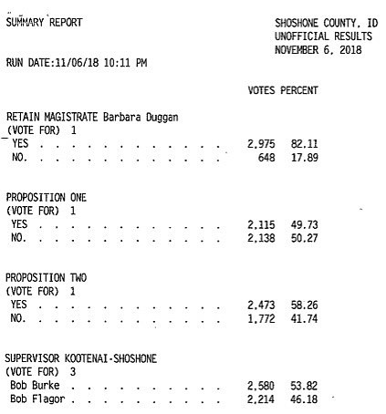 As for how those votes were cast, Shoshone County picks lined up exactly with the overall winners on the state level.
