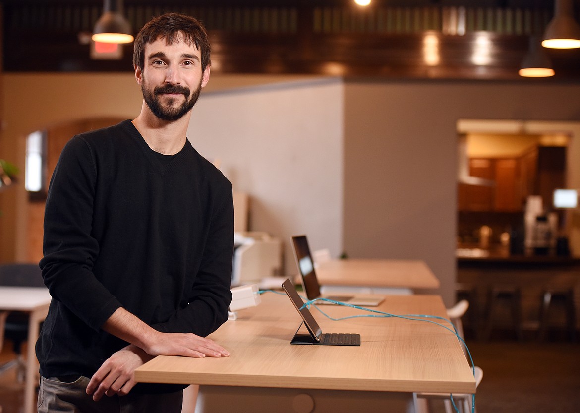 Member and software engineer Billy Mitsakos works remotely for a company in Oakland, California. He echoed Fortner’s views in what he likes about the co-working concept versus working from home.