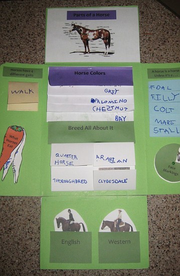 Topic suggestions to include in your lapbook: facts about the appaloosa horse, my top four favorite facts, horse taxonomy, animals related horses, the life cycle of a horse, horse classification, hooves are made of, the gaits of a horse, the anatomy of a horse, a horse’s diet and anything else you find during your research.