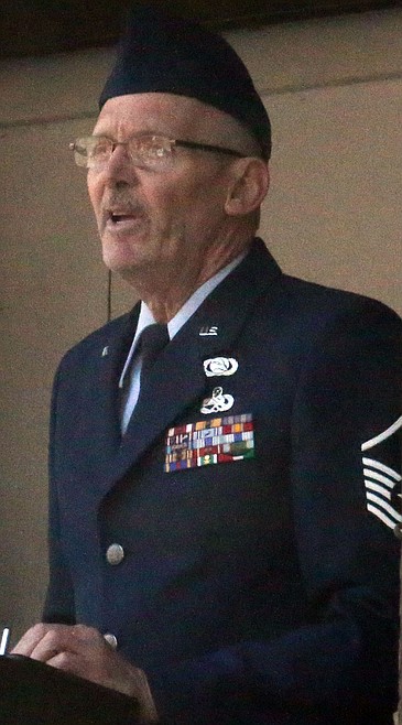Retired U.S. Air Force Master Sgt. Curley Lawson served as the event’s guest speaker despite a bad flu. Lawson works as a veterans readjustment counselor with the Department of Veterans Administration in Spokane. Lawson lamented that the day, which began as a tribute to the veterans of World War I, which ended 100 years ago Sunday, had to later be broadened to include veterans of later wars stretching from World War II to the present day.