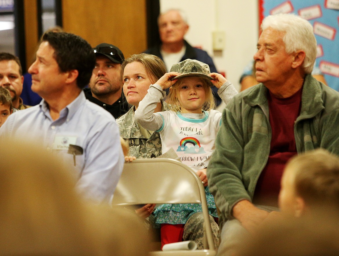 The Navy vet accepted the invite of his neighbor, third-grader Cassidy Breitenbach, to attend the Veterans Day assembly at Spirit Lake Elementary on Monday.