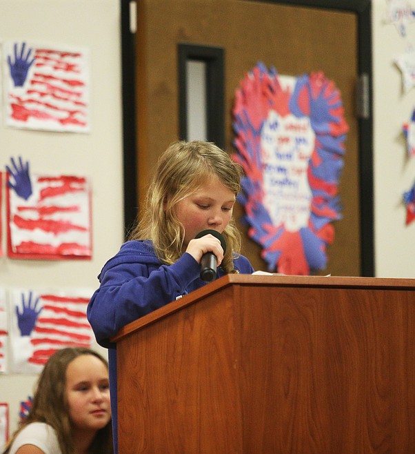Sixth-grader Skyah Woolsley said she learned a lot about Veterans Day from a neighbor and a great uncle, who are both veterans.