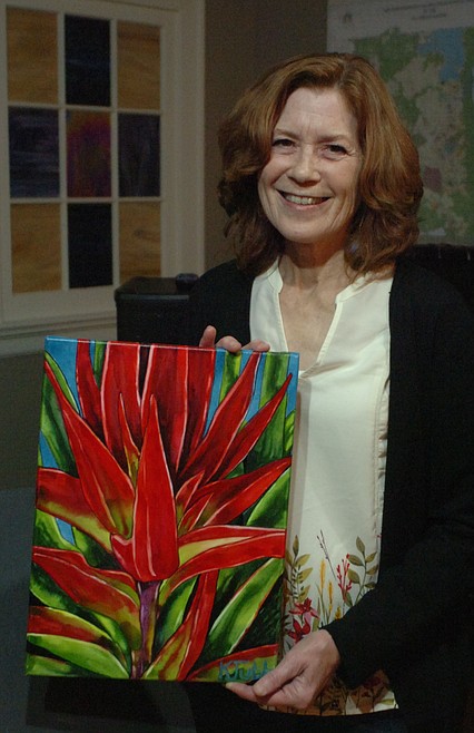 Kendahl Jan Jub, who has art studio in Missoula, was the featured artist for the gala. It was her first time at Hot Springs for an art event, and she showed her painting, “Vibrant Paintbrush,” which is a watercolor on canvas.