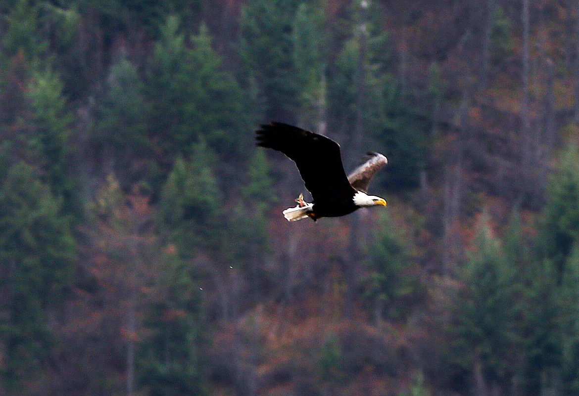A large number of bald eagles have already migrated to Lake Coeur d’Alene to feed on spawning kokanee salmon.
