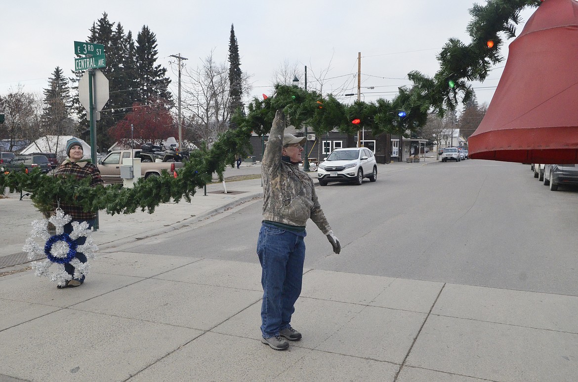 Volunteers strung lighted punctuated with red bells, snowflakes and wreaths throughout downtown signaling the beginning of the holiday season.