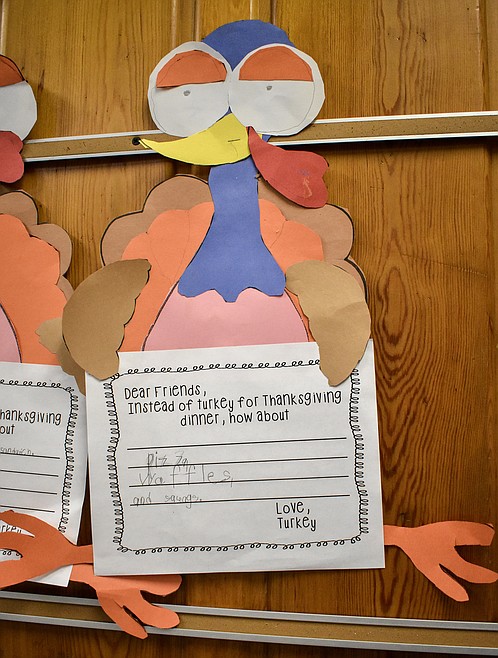 n You get a turkey from the woods. Put seasoning and salt and pepper for 20 minutes in the oven. After you cook it, eat it with your friends. I eat carrots and ranch and grapes with my turkey. After dinner we play outside.