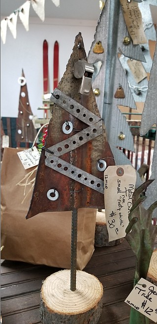 Duarte said that rusty metal is trendy at the moment. She indicated to the Tramp Art style metal Christmas trees that she made using her plasma cutter. The festive trees were decorated with unconventional “ornaments”, made up of all sorts of different items like drawer handles, can openers, washers, and bells.