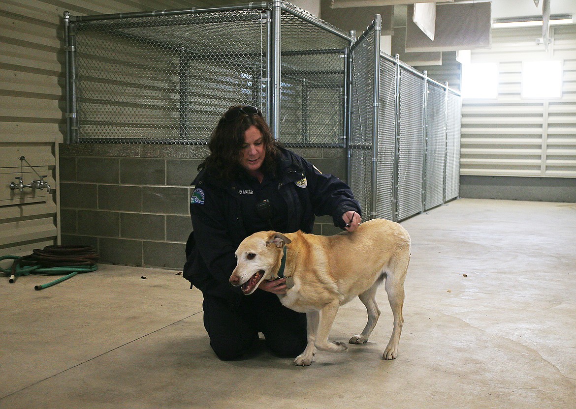 The Labrador was the first dog taken to Post Falls’s new animal shelter next to the police station. She was transferred from the previous facility off Seltice Way near the wastewater treatment plant.