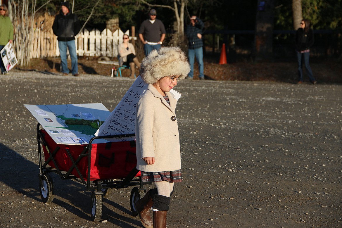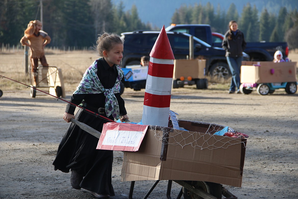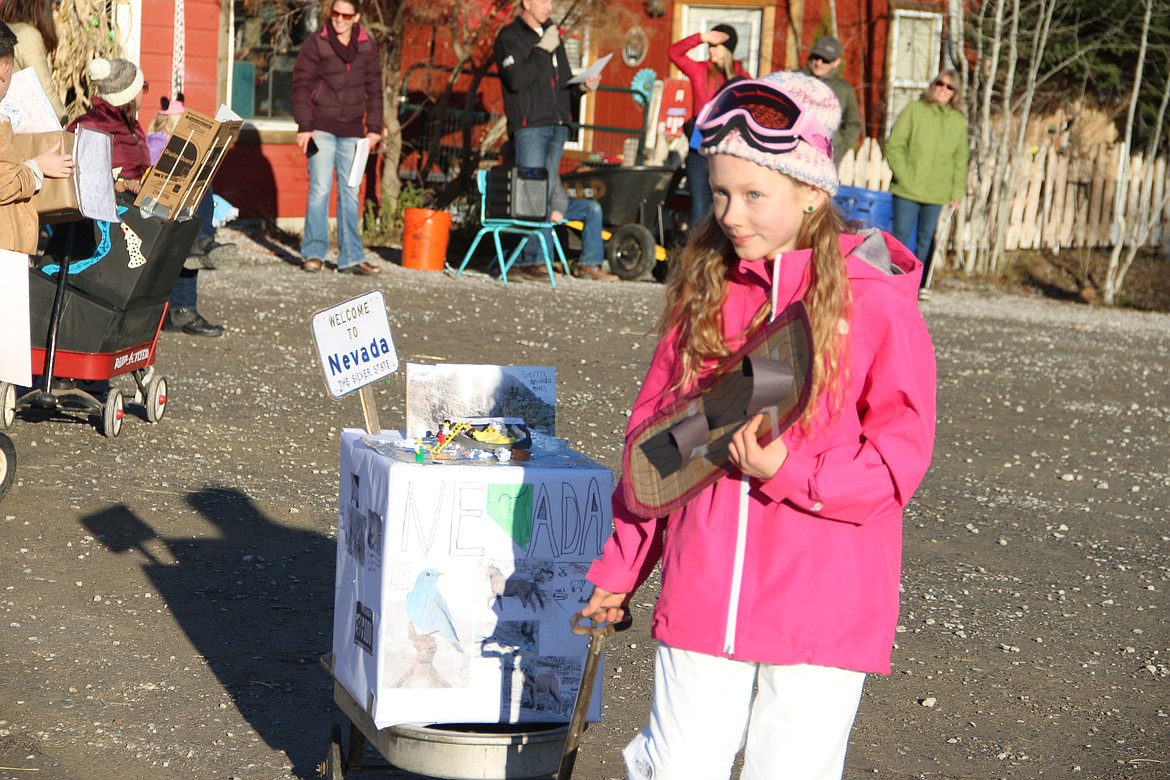 This was the first event of its kind at Selle Valley, and teacher Stacy Rief said the kids picked their states at random by drawing from a hat. They had three weeks to find out as much information as they could, and then they had to write a commentary that was 300 words or less. The commentary was read by Lars Mellander as the students were called individually to parade around the parking lot during the event.