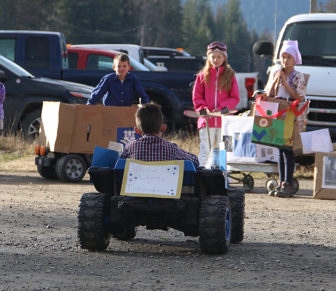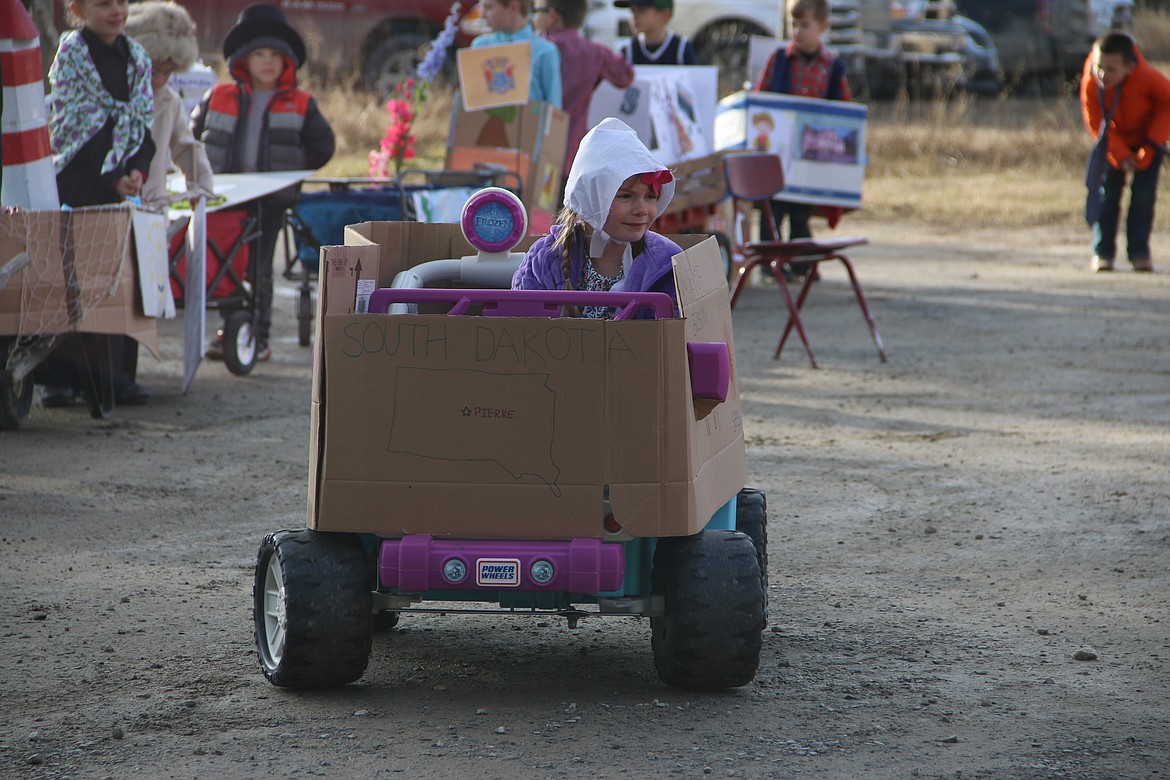 This was just a few of the hundreds of facts parents, staff and students learned about different states in the nation on Nov. 16. The kids didn’t just do a report on each of the states though, they each created a float to demonstrate the different things that make each state unique. Some used radio-controlled cars, some decorated their Power Wheels and others went with simpler floats using cardboard boxes and poster boards. The kids were creative in their float ideas. Colter, for example, even laser printed the Oklahoma flag at MakerPoint Studios.