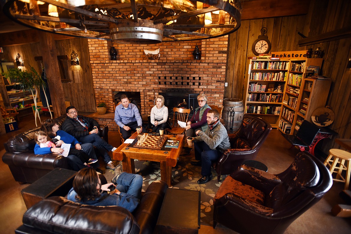 Sharing space with Stella’s Deli and Bakery next door, Dobson Creek has grown into a community hub, where clubs can hold meetings, school groups can gather for events and families and friends can meet for a cup of coffee and a game of chess.