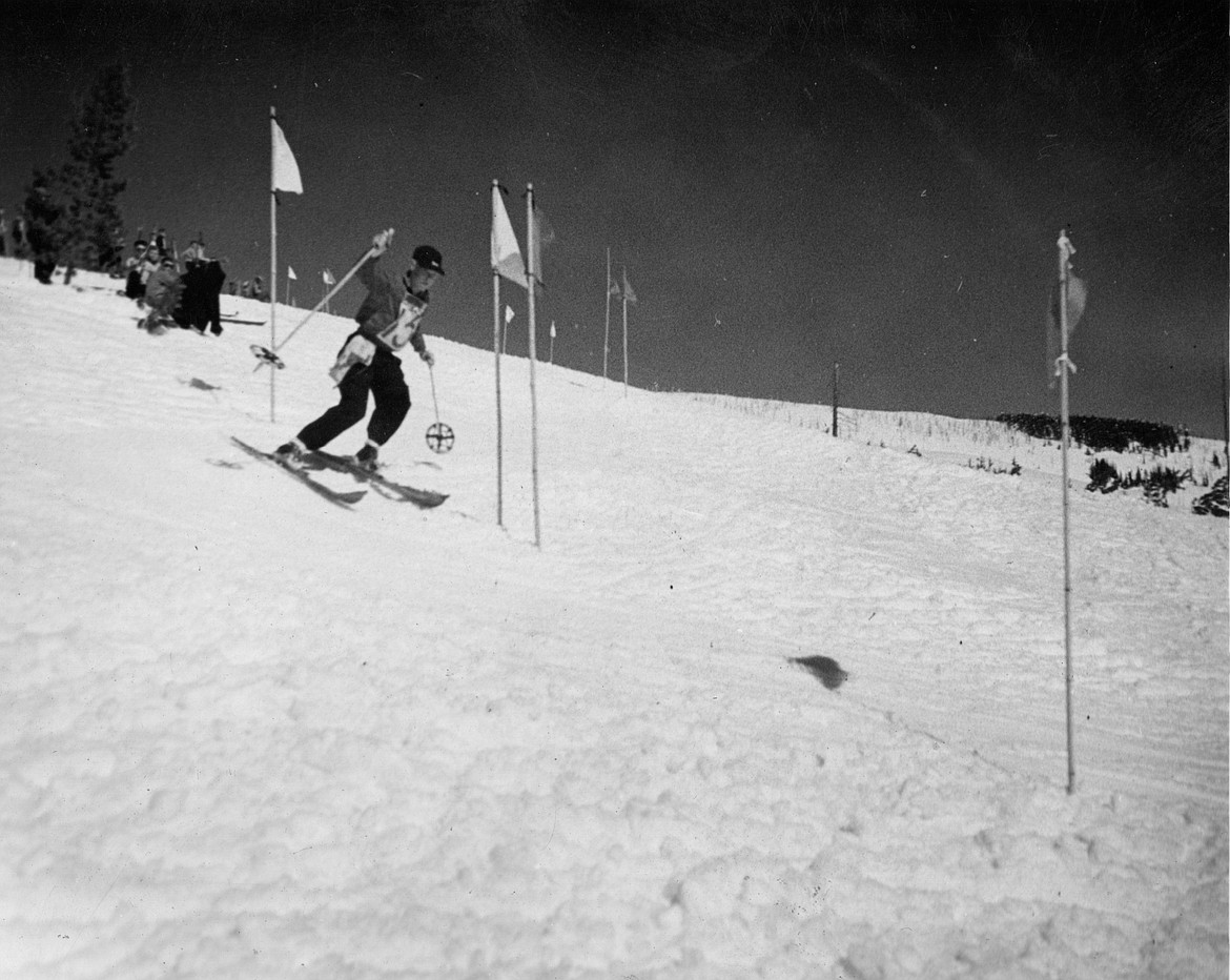 “Hosting the State Championships in 1939 was an epic story,” said FVSEF Executive Director Tim Hinderman. “Eighty-six competitors from 10 schools around the state traveled to Whitefish and then hiked from town up to the old Hellroaring Ski Club cabins — there was no road yet. They spent two nights camped out at the cabins and two days hiking up and racing on what today is Chair Two terrain. And equally amazing — over 400 spectators made the same trek from town to watch this first-time event!”