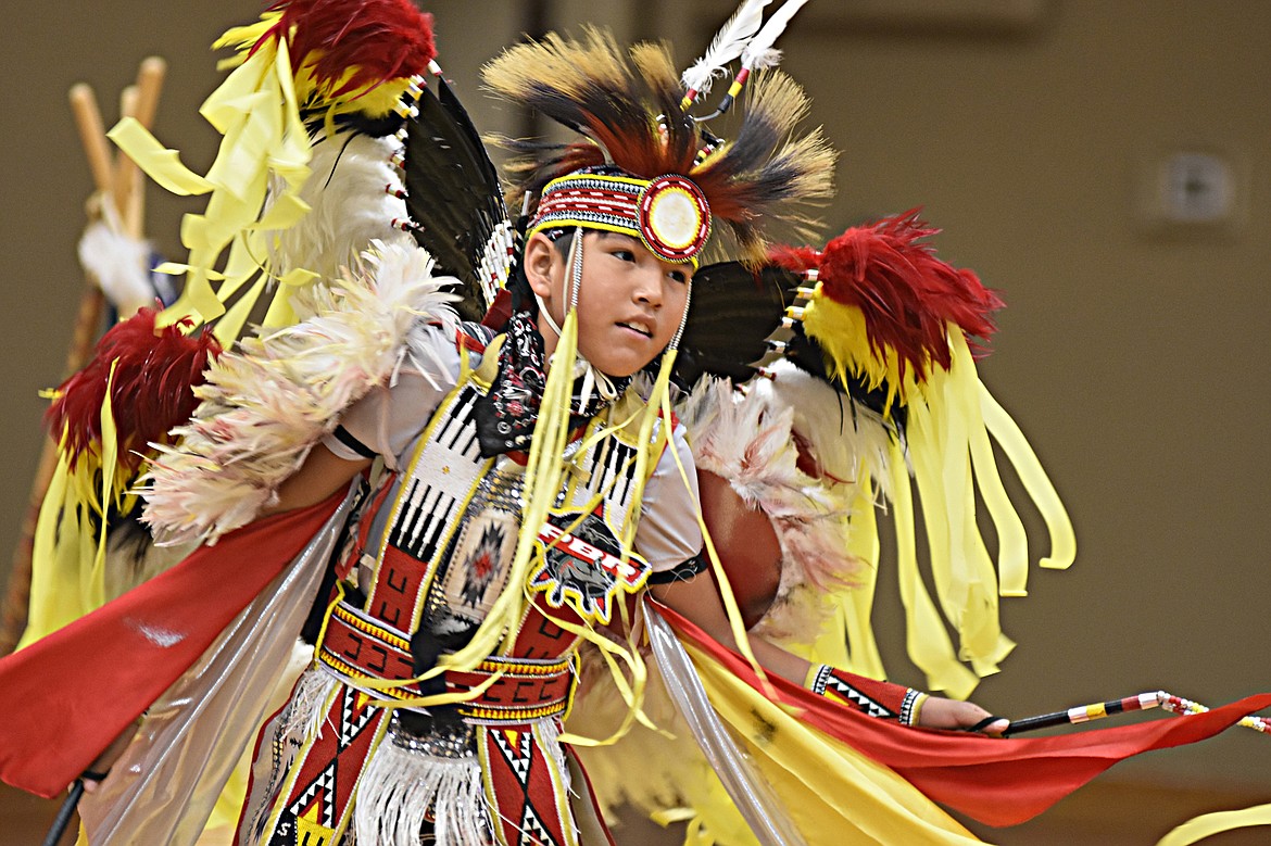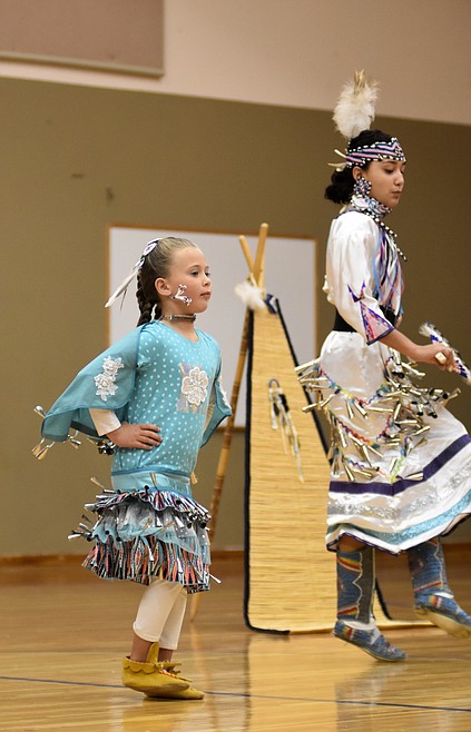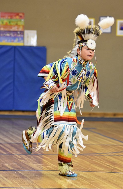Students and educators from the school joined members of the Pikuni Legacy Dance Troupe from Browning in the dance that concluded a presentation on Blackfeet culture and dancing as part of the school’s recognition of American Indian Heritage Day, which occurred on Friday and is designated by the state as an observance to commemorate Montana’s American Indians and “their valued heritage and culture.”