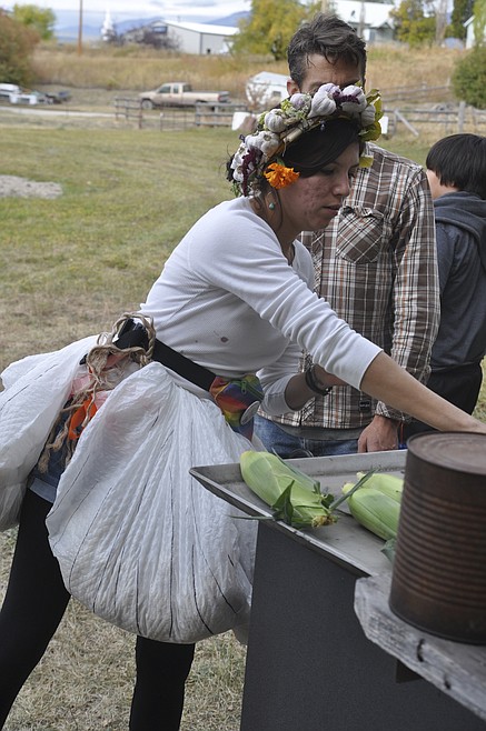 Rose Bear Don’t Walk, manager of the farmers market, donned garlic garb as she moved about Friday, Sept. 28, for a Garlic Festival at Old Timers Park in St. Ignatius.
