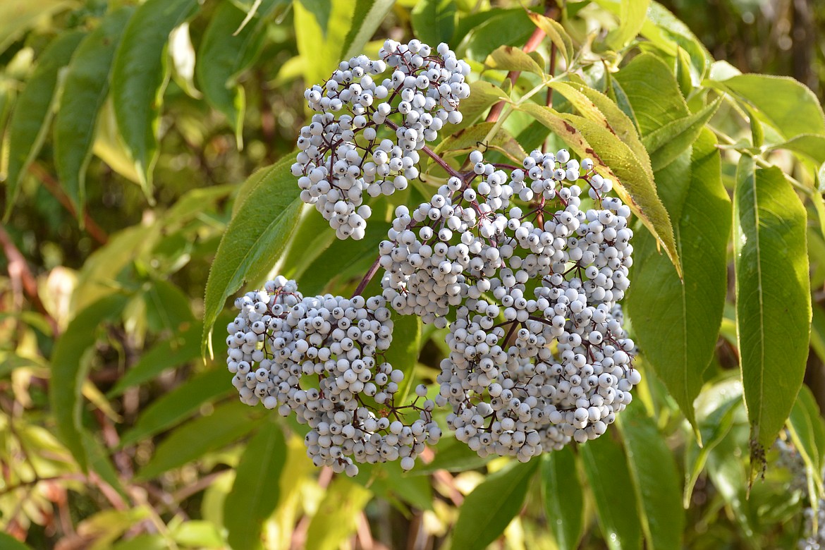Sometimes propagated as an ornamental shrub, the elderberry bush is a member of the honeysuckle family. It’s actually a small tree, with an abundance of delicate white flowers emerging as berry clusters generally between August and October, mostly in cool-to-warm areas of the country, like the northwest United States and Canada.