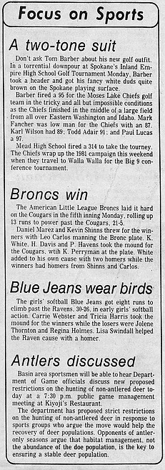 Facts from the past gleaned from the Moses Lake Herald, Columbia Basin Herald and The Neppel Record by Cheryl (Driggs) Elkins: