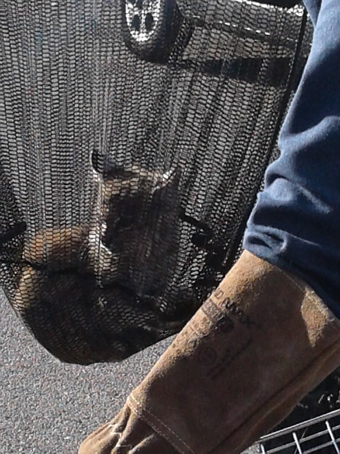 When he arrived, he found a wild animal trying to hide in the wheel well of a vehicle.